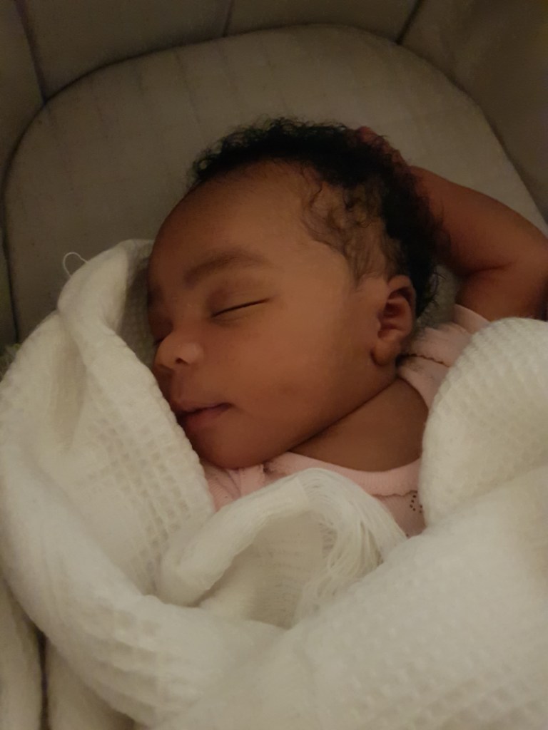 ‘It’s almost 3am…and my 7 week old is up for a feed for the 4th time tonight..bright eyed and bushy tailed😆.’