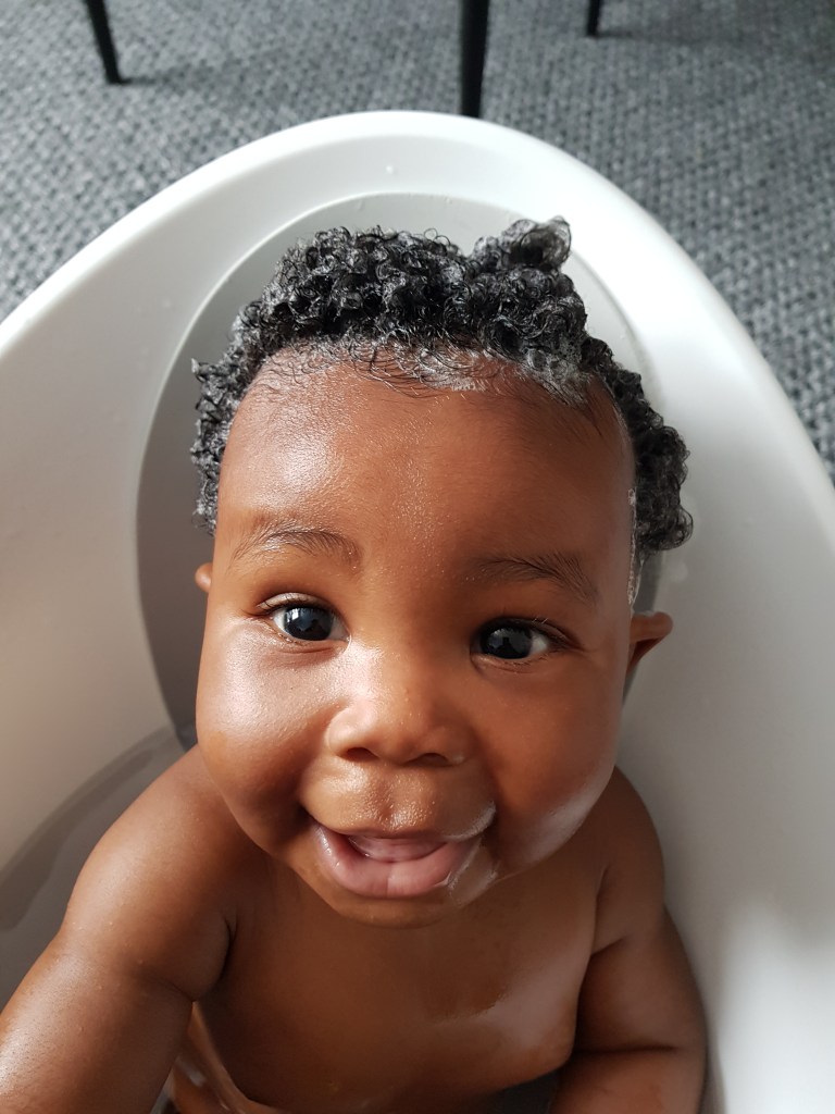 The same applies for hair. I add oil to Micah’s damp hair, then add leave in conditioner. This tends to be working to prevent dryness.